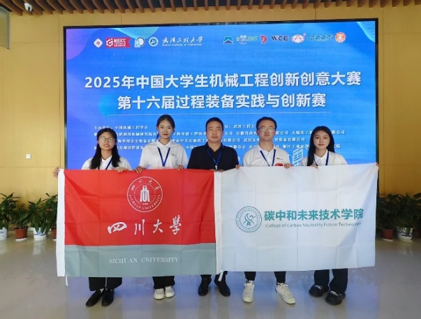 2024级博士生赵志胜、匹兹堡学院2023级本科生吕若溪分别带领团队,聚焦“碳中和+机械”的交叉领域,凭借扎实的创新能力,攻克了传统石化CO2捕集装备效率低、体积大的瓶颈问题,并成功打通了实施产业应用的中试路径。最终在激烈竞争中脱颖而出,荣膺两项全国一等奖。