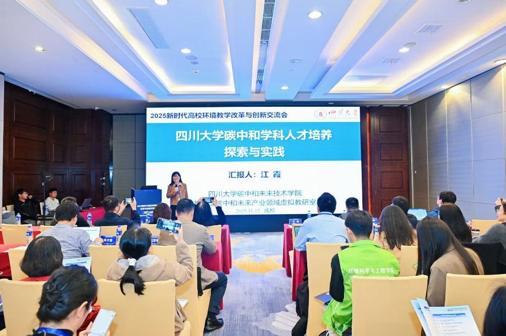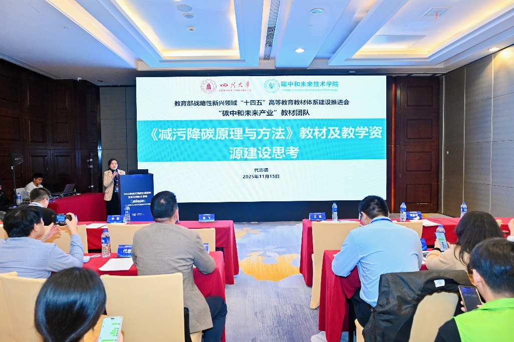 江霞以“四川大学碳中和学科人才培养的探索与实践”为题,详细介绍了四川大学在碳中和学科建设、人才培养及平台建设等方面的创新举措和实践经验。学院姚露副研究员围绕“《减污降碳原理与方法》教材及教学资源建设思考”进行分享,重点阐述了该教材的编写背景、思路与内容,以及配套教学资源的建设等多方面的成果。